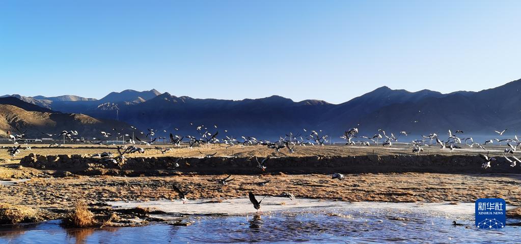 冬至過后,雪域高原進入一年中最寒冷的時段。在雅魯藏布江畔、拉薩河谷、高原湖泊和廣袤的田野里,大批越冬的候鳥自由自在覓食、翱翔,黑頸鶴、斑頭雁、赤麻鴨等候鳥的叫聲此起彼伏,在寒冬里奏響和諧生態(tài)交響曲。