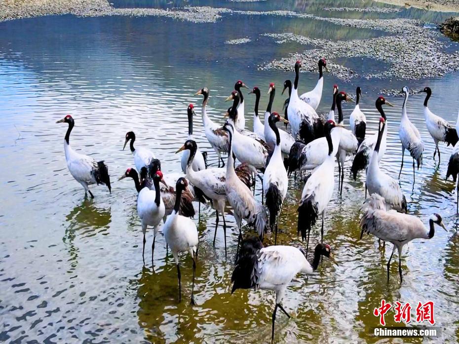 在西藏林芝市米林境內有大片的河濱濕地,每到冬季,這里就成為了眾多珍貴鳥類的越冬天堂。而這些珍稀鳥類中最為特別的便是國家一級重點保護野生動物——黑頸鶴。黑頸鶴,是唯一生長、繁殖在高原的鶴類。每年冬季,大批黑頸鶴從繁殖地遷徙到西藏雅魯藏布江中游河谷地帶越冬,它們會在河谷、農(nóng)田、沼澤地里覓食嬉戲,享受冬日暖陽。圖為黑頸鶴在雅魯藏布江畔覓食。 米林融媒供圖