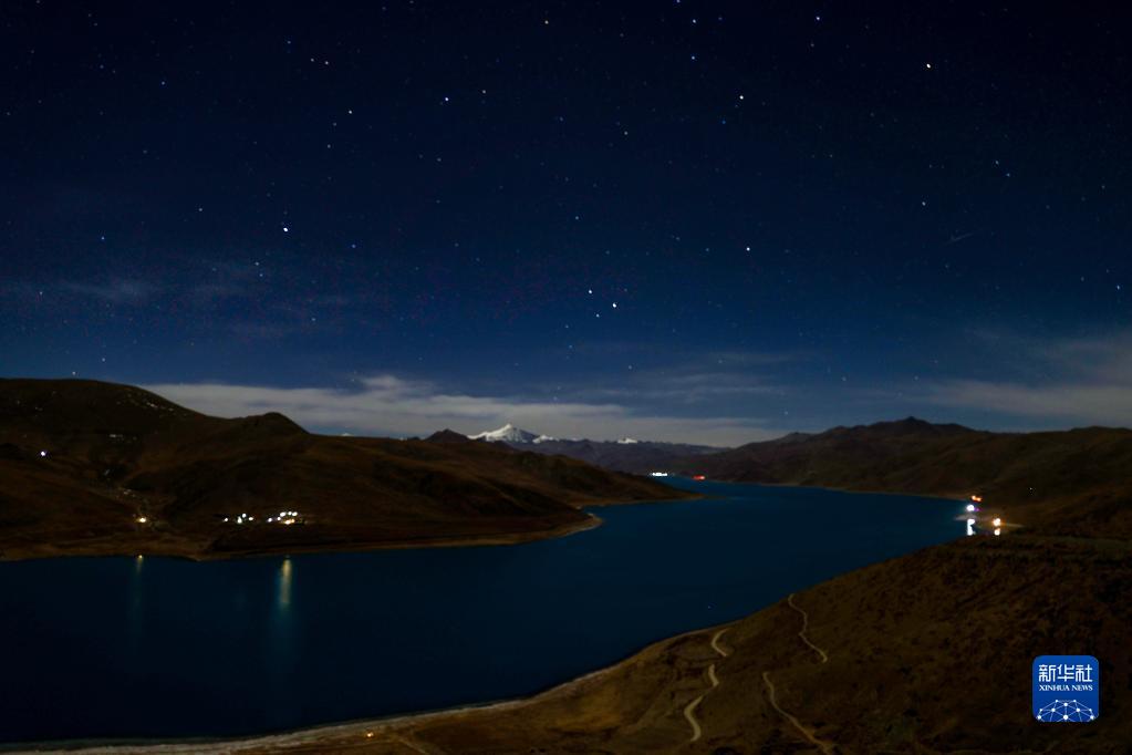 這是星空下的羊卓雍錯(cuò)(1月1日攝)。新華社記者 姜帆 攝