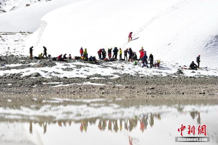資料圖為登山愛(ài)好者在廓瓊崗日冰川進(jìn)行冰雪訓(xùn)練。 中新社記者 貢嘎來(lái)松 攝