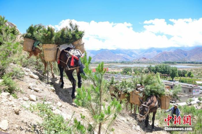 資料圖為拉薩河流域造林隊(duì)員運(yùn)送樟子松樹(shù)苗。 中新社記者 貢嘎來(lái)松 攝