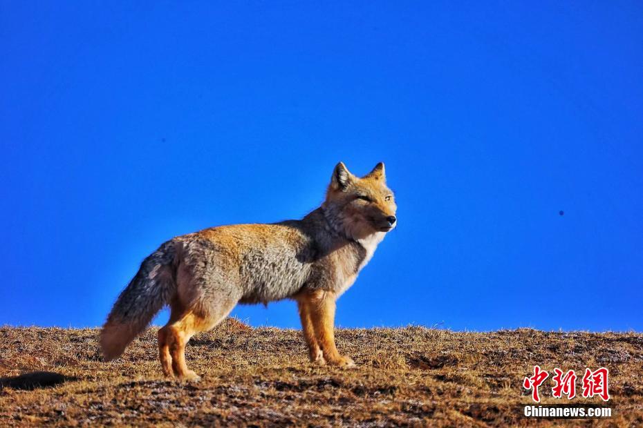 青海雜多三只藏狐曬太陽(yáng) 表情神似復(fù)制粘貼