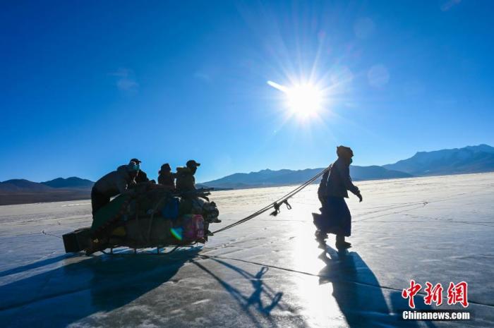 這個邊境小村3日迎來了一年一度的“趕羊”盛事。村民們將1400余只羊由岸邊通過厚實的冰面趕往湖心島牧場。普姆雍措被稱為“仙女之淚”,位于西藏山南市浪卡子縣,每到冬季極寒時,便是羊群轉(zhuǎn)牧場的好時機(jī)。
