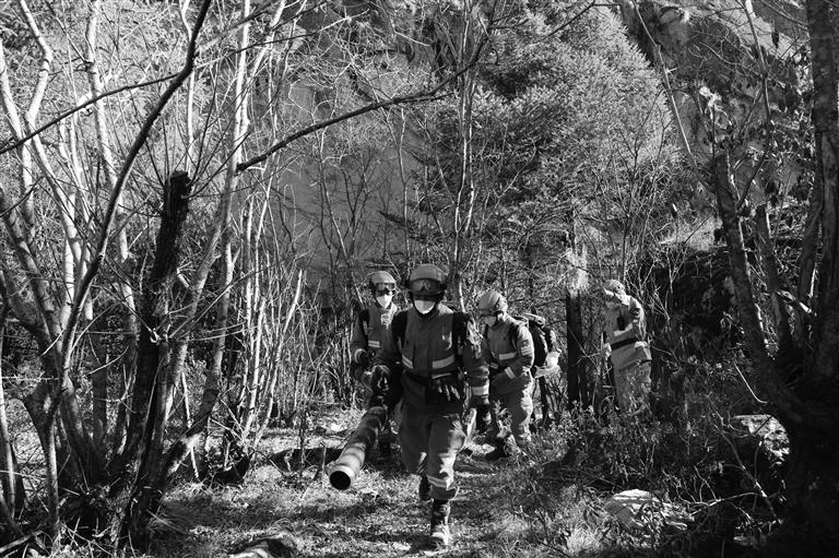 消防員正在巡山。圖由洛桑頓珠提供