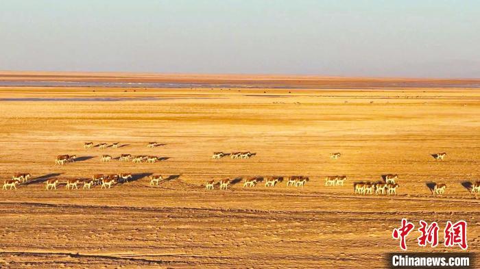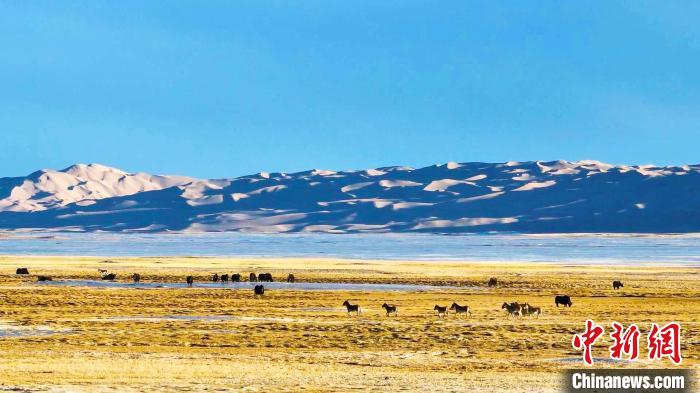 和煦的春風(fēng)為沉默一冬的高原帶來蓬勃生機,野牦牛、藏羚羊、藏野驢等珍稀野生動物在一望無際的高原上覓食。 阿爾金山國家級自然保護(hù)區(qū)管理局提供