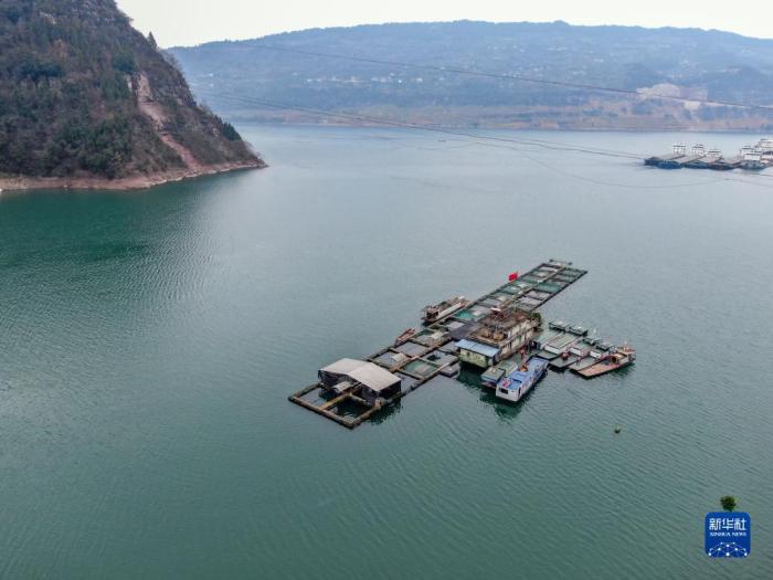 這是三峽庫區(qū)珍稀魚類馴養(yǎng)基地(2022年2月25日攝,無人機(jī)照片)。新華社記者 唐奕 攝