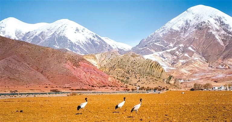 近日,西藏拉薩市各區(qū)縣迎來降雪。群山被白雪覆蓋,高原壯麗唯美。黑頸鶴、斑頭雁等翩躚起舞,拉薩河谷生機(jī)盎然。