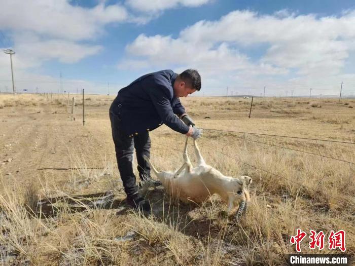 據(jù)介紹,3月12日11時(shí)許,青藏集團(tuán)公司西寧電務(wù)段哈爾蓋信號(hào)車(chē)間哈爾蓋信號(hào)工區(qū)的3名職工在徒步前往管內(nèi)那仁中繼站檢修信號(hào)設(shè)備途中發(fā)現(xiàn),有動(dòng)物掛在網(wǎng)圍欄,無(wú)法掙脫。