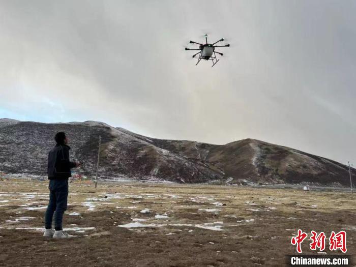 圖為技術(shù)人員正在操作無人機(jī)?!∏嗪J×植菥止﹫D