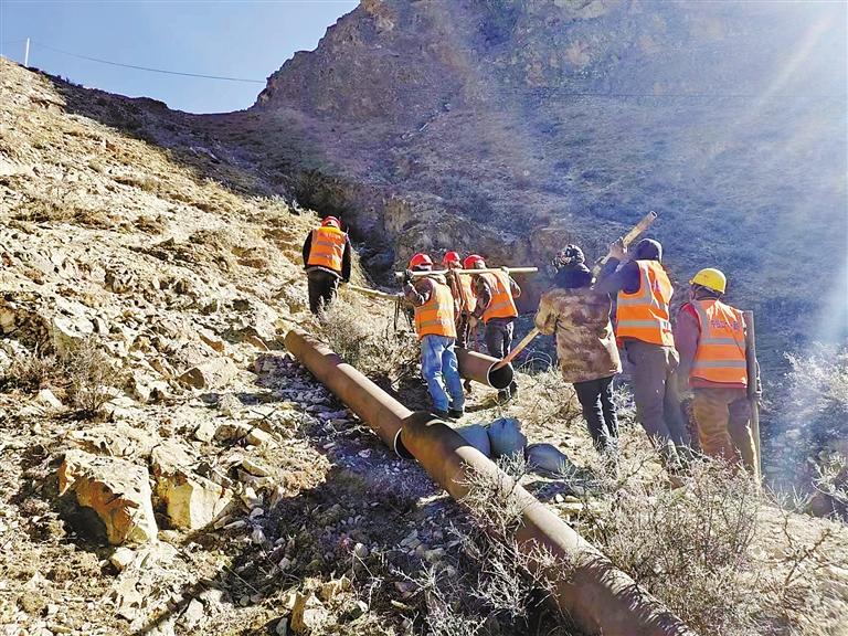 圖為中鐵二十一局工人在巴嘎雪片區(qū)將主鋼管轉(zhuǎn)運(yùn)至焊接點(diǎn)位。記者 楊小娟 攝