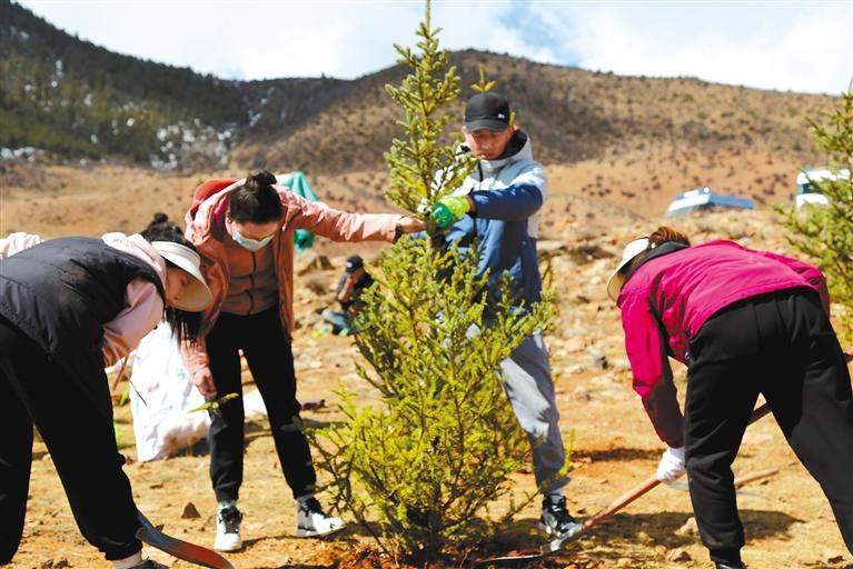 圖為4月7日,西藏左貢縣植樹活動現(xiàn)場?!埡?攝