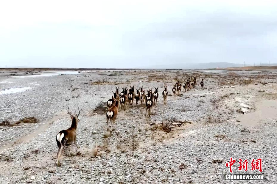 成群馬鹿在布哈河畔撒歡。才新木加 攝