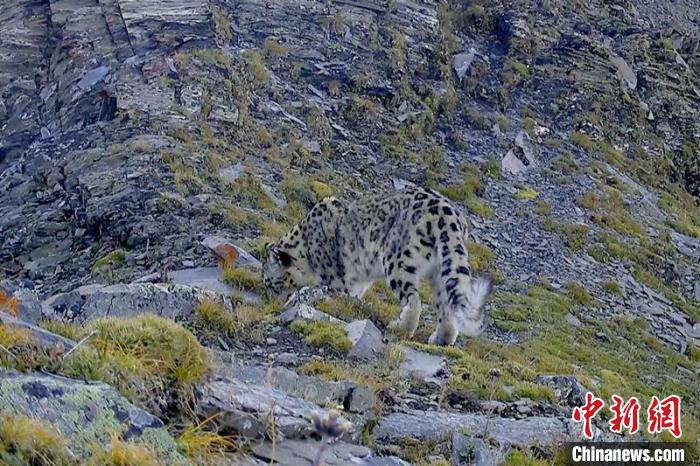 紅外線相機拍到的國家一級保護動物雪豹活動影像。 新龍縣林業(yè)和草原局供圖