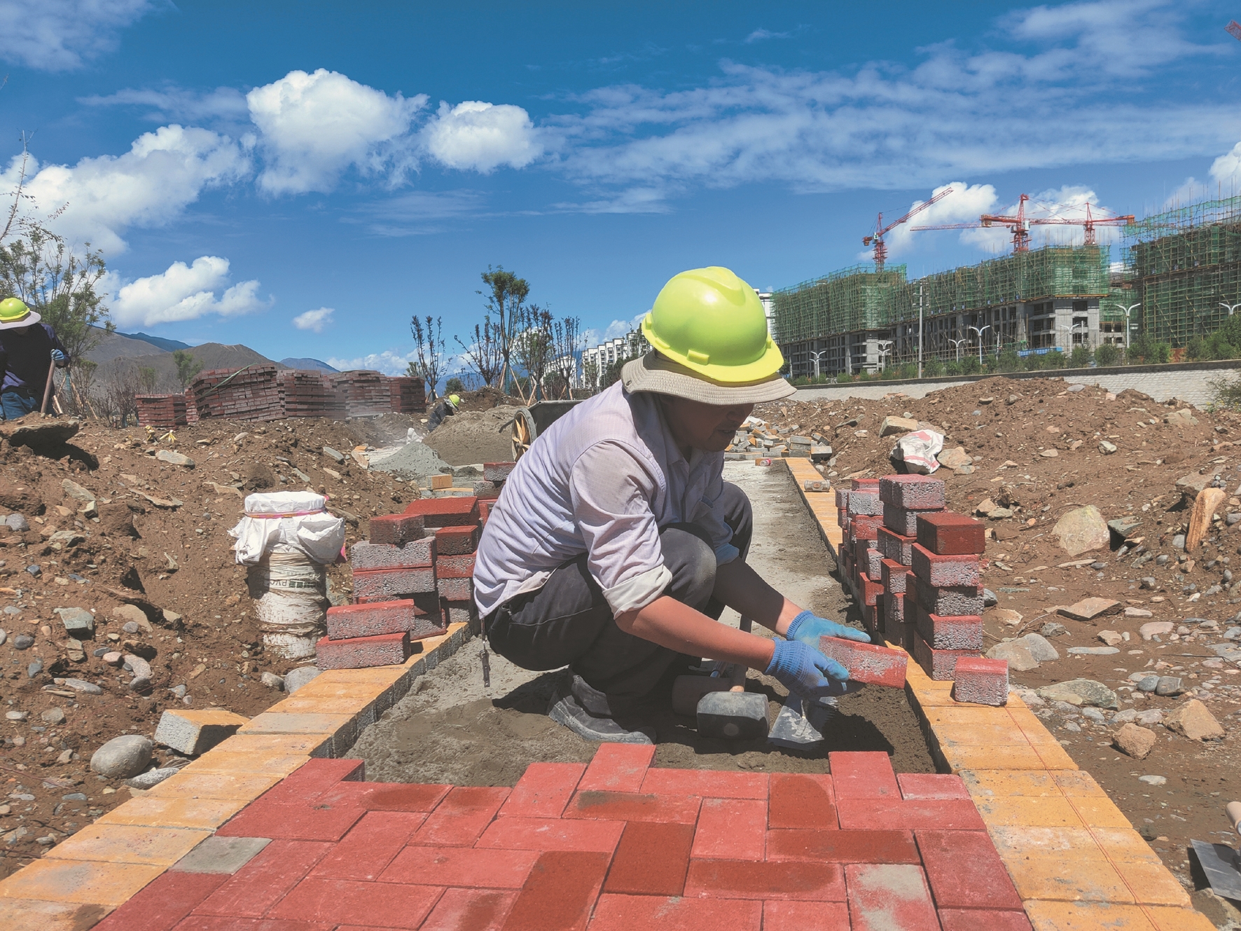 圖為工人正在現(xiàn)場(chǎng)施工。拉薩融媒記者 余洋洋攝