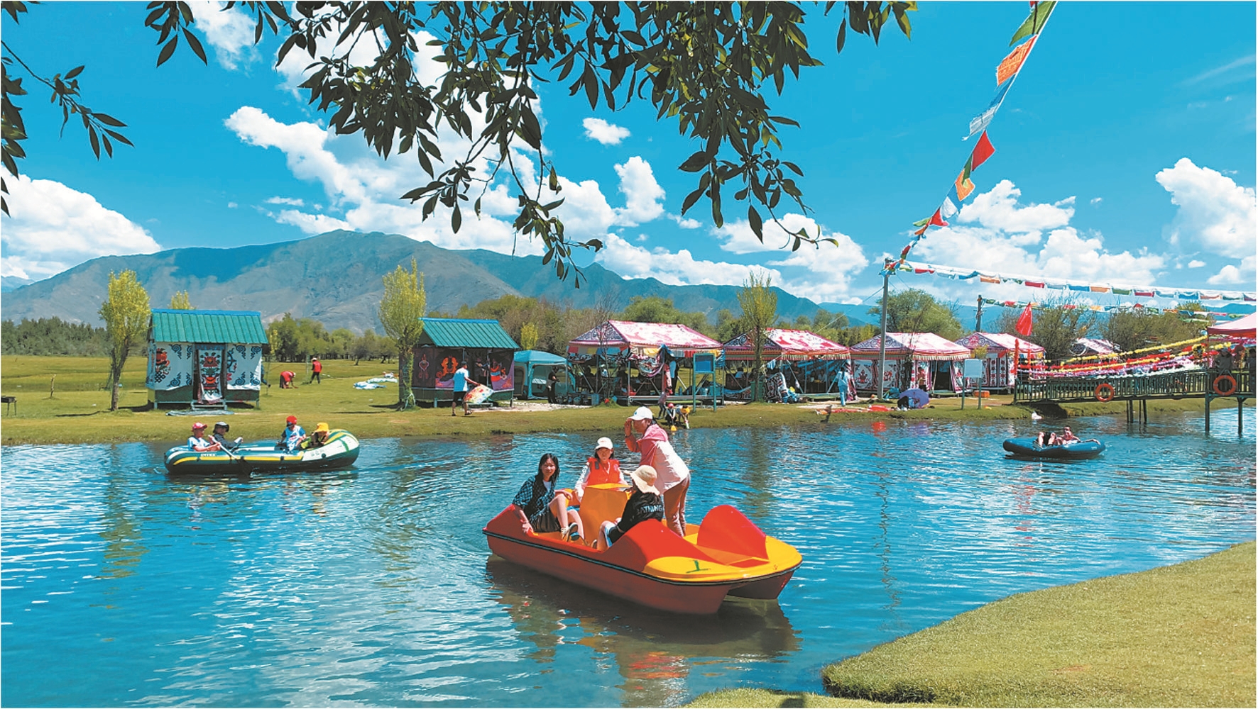 時(shí)下,正是“過林卡”的最好時(shí)節(jié),為了吸引客源、招攬生意,林卡經(jīng)營(yíng)者不斷完善基礎(chǔ)設(shè)施,搭建漂亮的帳篷,提供特色服務(wù),滿足市民游客戲水、劃船、健身運(yùn)動(dòng)和特色美食等需求。