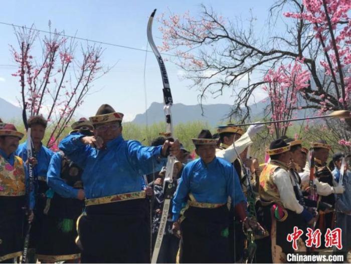 資料圖:桃花節(jié)上的工布響箭比賽吸引了眾多游客觀看。冉文娟 攝