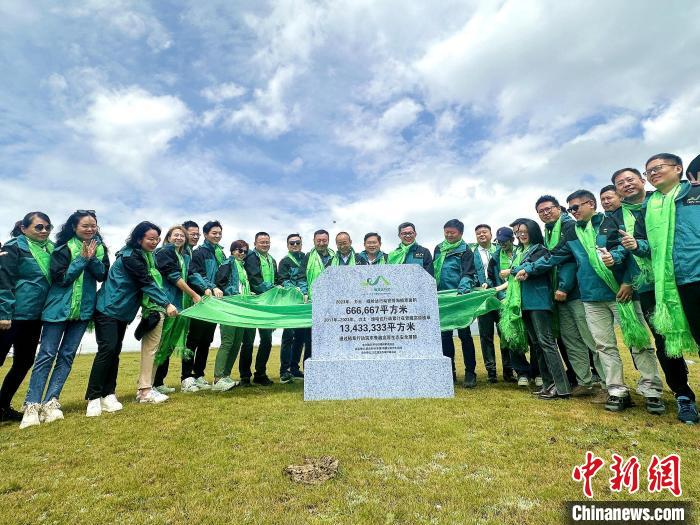 當(dāng)日,“力士·綠哈達(dá)行動(dòng)”2023年草場見證儀式在青海省海南藏族自治州貴德縣拉西瓦鎮(zhèn)巴卡臺(tái)草原舉行。來自中國各地的企業(yè)代表以“一人一元一平米”的形式,共同參與到青藏高原生態(tài)保護(hù)中。