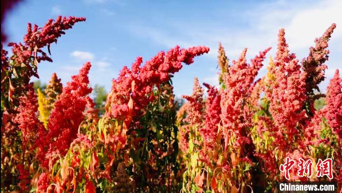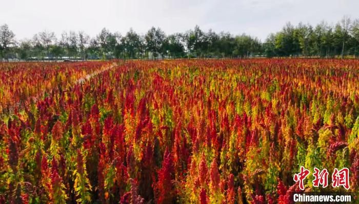 金秋十月,地處中國(guó)“聚寶盆”柴達(dá)木盆地腹地的青海省海西州烏蘭縣迎來(lái)藜麥成熟豐收季,姹紫嫣紅美不勝收。