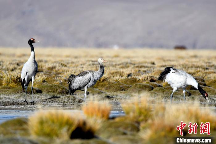 黑頸鶴是全球十五種鶴類中,唯一在高原地區(qū)繁殖和越冬的鶴類,屬中國國家一級保護(hù)野生動物。近日,中新社記者走進(jìn)西藏那曲申扎縣這一黑頸鶴的重要繁殖地,了解“高原精靈”黑頸鶴的越冬遷徙。