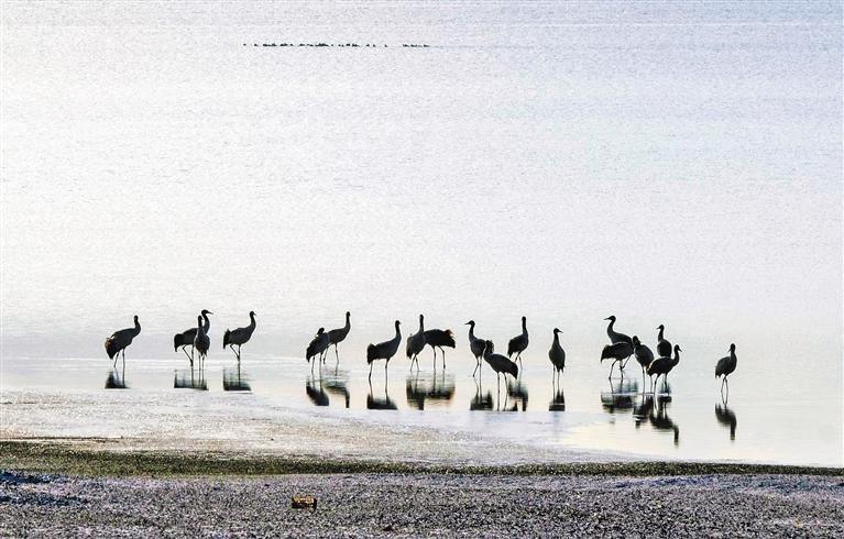 “生態(tài)好不好,看鳥就知道?!苯?,在西藏越冬的“老朋友”黑頸鶴越來越多。每年3月中旬,黑頸鶴會從越冬地——雅江中游河谷及其支流拉薩河、年楚河流域的“一江兩河”地區(qū),飛去羌塘北部草原等地繁育后代;10月中下旬又從繁殖地——那曲的班戈縣、申扎縣、嘉黎縣,阿里的日土縣、普蘭縣,日喀則的昂仁縣及拉薩的當雄縣返回到越冬地。黑頸鶴的成群遷徙、停歇或繁殖,正是生態(tài)環(huán)境持續(xù)向好的“最美注腳”。
