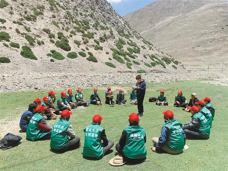 圖為美巴切勤鄉(xiāng)干部向護林員宣講生態(tài)環(huán)境保護政策。記者 楊小娟 攝