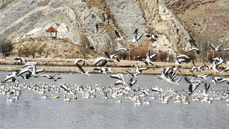近年來,西藏不斷加強野生動物保護力度,全面提升自然保護區(qū)基礎設施、管理水平,健全完善野生動物保護法律法規(guī),野生動物保護工作取得顯著成效。隨著各族干部群眾保護意識不斷增強,斑頭雁、赤麻鴨、紅嘴鷗等大量保護動物都會飛到西藏過冬,它們聚集在西藏的各個湖畔,時而凌空盤旋、時而悠閑踱步,鳥鳴聲此起彼伏,構成了冬日里一道美麗的風景。