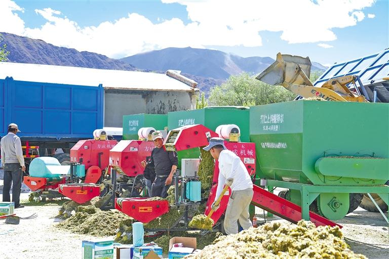 圖為日喀則市薩迦縣飼草料加工現(xiàn)場。記者 次仁平措 攝