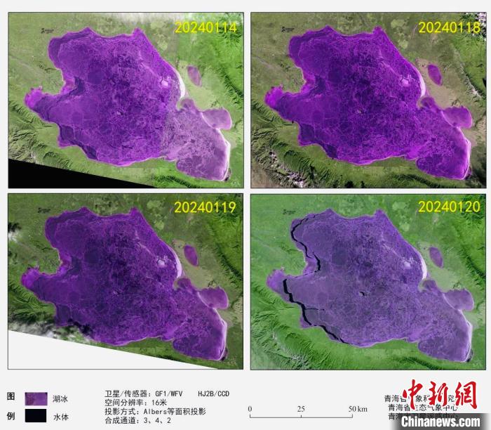 據(jù)介紹,衛(wèi)星遙感監(jiān)測(cè)顯示,1月14日、18日、19日,青海湖湖泊表面完全凍結(jié),依據(jù)《高原湖泊湖冰物候遙感監(jiān)測(cè)技術(shù)標(biāo)準(zhǔn)》(DB63/T1929-2021),湖泊表面連續(xù)5日完全被冰覆蓋的首日為完全凍結(jié)日,因此判定1月14日為青海湖完全凍結(jié)日。