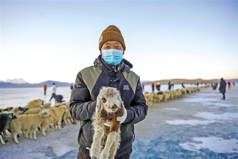 海拔5000米、3公里冰道,上千只羊,在牧羊人的護送下,從普莫雍錯北岸涉冰踏雪,輾轉到湖心島過冬。這一沿襲千年的獨特牧業(yè)生產方式,是推瓦村人與大自然的默契,閃爍著古老的生存智慧。