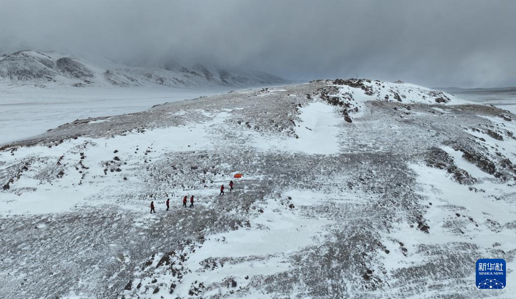 瑪曲鄉(xiāng)長江源黨員環(huán)保志愿隊在巡邏守護長江源(2024年2月2日攝,無人機照片)。新華社記者 晉美多吉 攝