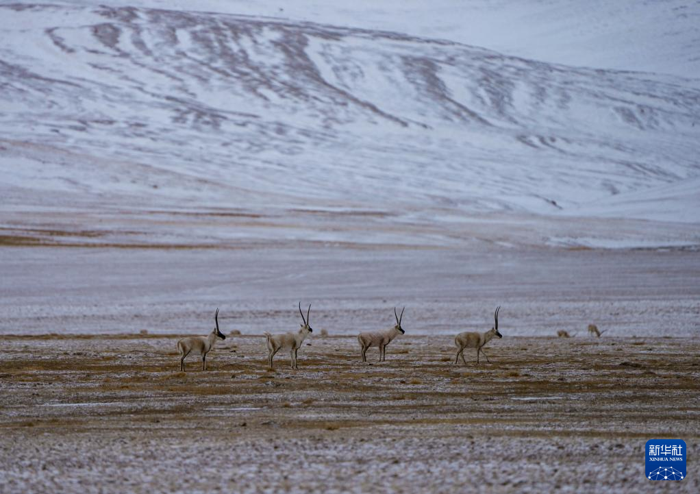 生活在三江源國家公園唐北片區(qū)的藏羚羊(2024年2月1日攝)。新華社記者 儲國強 攝