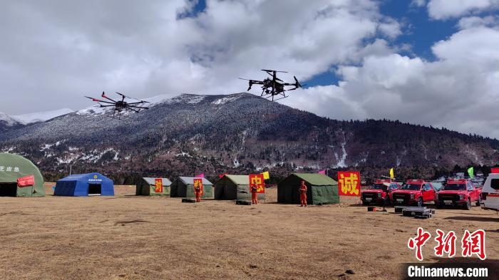 圖為拉練中開展無人機群編隊飛行訓練。西藏林芝市森林消防支隊供圖