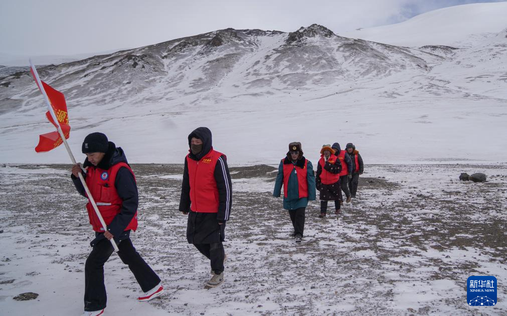 瑪曲鄉(xiāng)長江源環(huán)保志愿隊(duì)在巡邏守護(hù)長江源(2月2日攝)。新華社記者 晉美多吉 攝