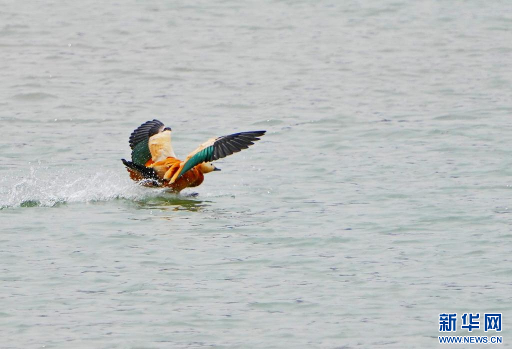 虎頭山水庫(kù)里的赤麻鴨(4月24日攝)。新華社記者 張汝鋒 攝