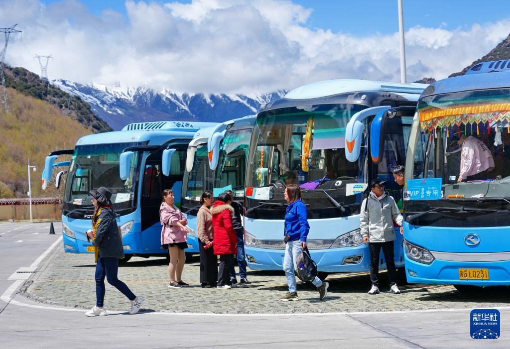 游客在拉(薩)林(芝)高等級(jí)公路工布江達(dá)縣服務(wù)區(qū)下車小憩(4月19日攝)。新華社記者 張汝鋒 攝