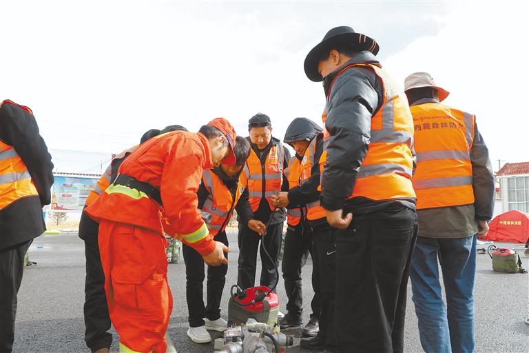 消防員向管護(hù)員培訓(xùn)防滅火設(shè)備的使用和維護(hù)知識。通訊員 甄小龍 次仁多杰 攝