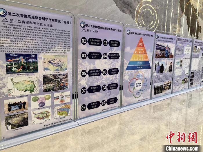圖為第二次青藏科考成果助推青海交通高質(zhì)量發(fā)展對(duì)接會(huì)場(chǎng)外展板,展示科考項(xiàng)目。 祁增蓓攝