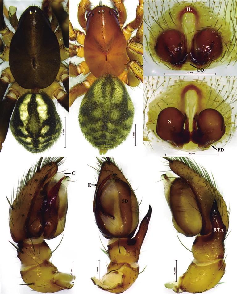 5種擬平腹蛛新種分別為察隅阿斯蛛(采自察隅縣)、達(dá)娃阿斯蛛(采自墨脫縣)、米古馬利蛛(采自察隅縣)、墨脫馬利蛛(采自墨脫縣)和亞?wèn)|馬利蛛(采自亞?wèn)|縣)。