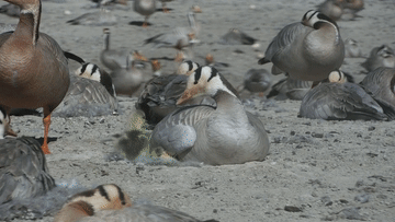 雄性斑頭雁守護在雌性斑頭雁身邊