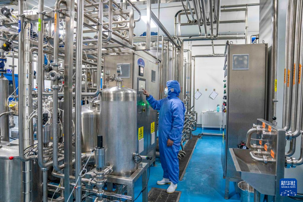 在各式各樣的奶制品機(jī)器旁,幾名工作人員正記錄著其運(yùn)行情況;實(shí)驗(yàn)室里,檢驗(yàn)人員在對牛奶進(jìn)行抽樣檢測……在位于西藏那曲市聶榮縣嘎確牧場的奶制品生產(chǎn)廠房里,罐裝酸奶生產(chǎn)流水線的準(zhǔn)備工作正在進(jìn)行。