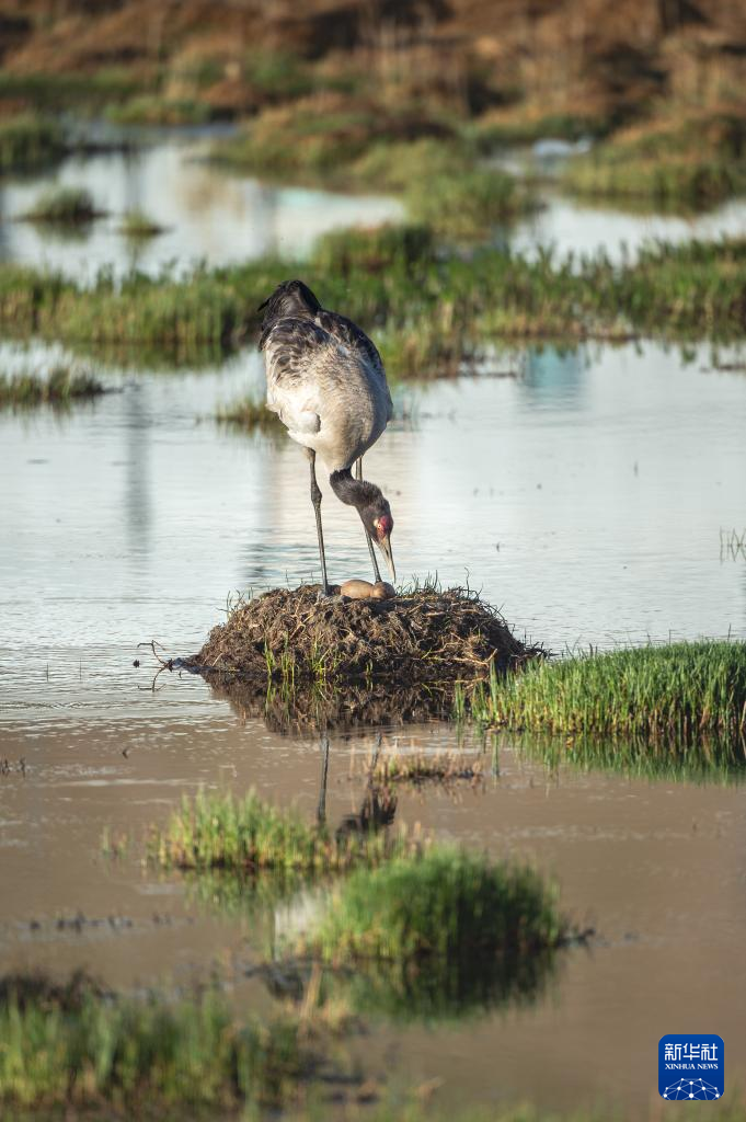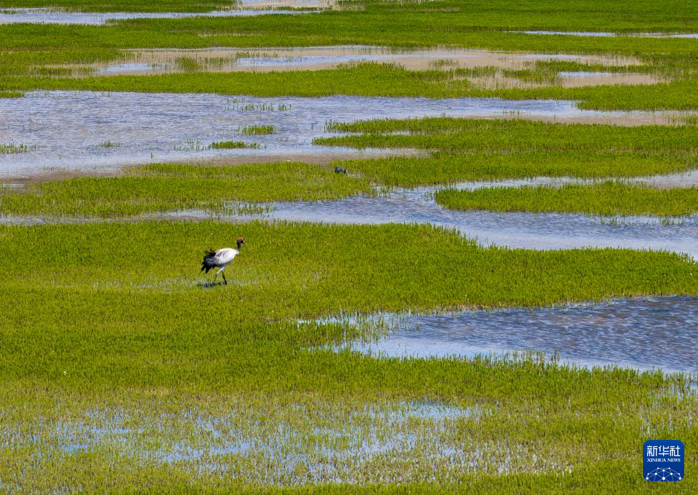 黑頸鶴在濕地孵蛋(6月7日攝)。新華社記者 姜帆 攝