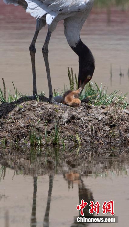 6月16日,在海拔4700米的西藏那曲市申扎縣,經(jīng)過34天的漫長孵化期,一對黑頸鶴夫婦終于等來了自己的小黑頸鶴成功破殼出生。值得一提的是,黑頸鶴寶寶的誕生日也是2024年的父親節(jié),黑頸鶴父親在節(jié)日當(dāng)天喜獲最珍貴的禮物。據(jù)悉,黑頸鶴每窩通常產(chǎn)卵1-2枚,孵化期通常要33到35天。中新社記者 貢嘎來松 攝
