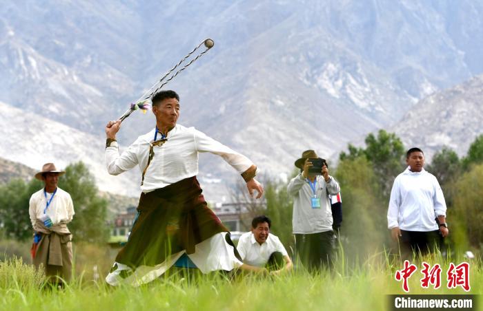 當(dāng)斜挎在身的放牧工具變身運(yùn)動會上的比賽項(xiàng)目,參賽選手和觀眾都覺得難度提高了不少?!捌綍r放牧,用古朵甩石頭只是一個大概的方向,能憑借聲音指揮牲畜或者嚇退野獸就行。比賽可不是這樣,得擊中60米外的目標(biāo)?!北M管難度不小,來自西藏拉薩市林周縣唐古鄉(xiāng)的多吉赤多依舊很高興能參加這樣的比賽。
