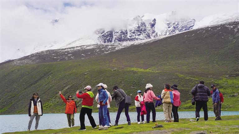 “眼前的景色如此浩瀚,無論我們?nèi)绾闻?,都無法將其完全收入眼底;手中的相機(jī)快門不停地按下,卻總感覺無法捕捉到每一處細(xì)節(jié)的美麗;社交媒體上的照片和視頻,雖然已經(jīng)分享了無數(shù),但總覺得還有更多美好未能展現(xiàn)。言語(yǔ)在這一刻顯得如此蒼白無力,無法完全傳達(dá)我們面對(duì)美景時(shí)的激動(dòng)心情?!边@是河南游客張曉明和劉芳夫婦對(duì)薩普雪山的贊美。置身于這絕美的畫卷中,一聲聲驚嘆,是他們對(duì)大自然鬼斧神工的贊美,也是他們內(nèi)心震撼的真實(shí)寫照。