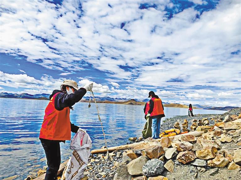 近日,山南市浪卡子縣組織干部群眾開展“心系母親湖 共護生態(tài)家園”主題環(huán)?;顒?,清理羊湖沿岸、河道溝渠等區(qū)域的垃圾,以實際行動守護良好的自然生態(tài)。