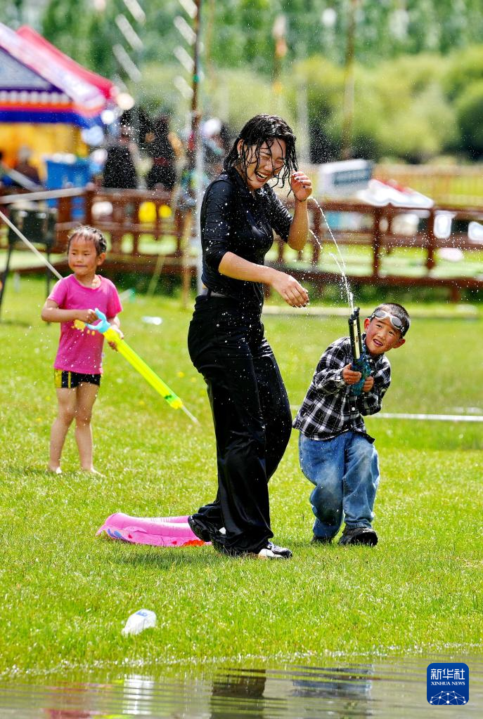 7月14日,大人和孩子在“神秘樹林”玩水。新華社記者 張汝鋒 攝