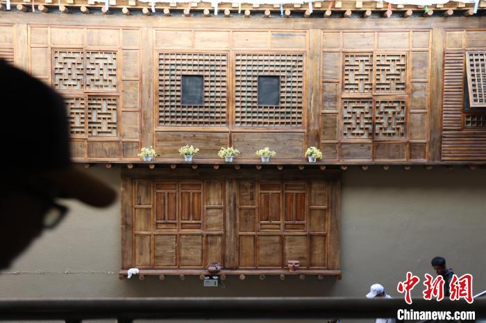 7月24日,參加“中國式現(xiàn)代化的萬千氣象·網(wǎng)絡(luò)名人青海行”活動的網(wǎng)絡(luò)名人,抵達江河源頭青海玉樹藏族自治州,在玉樹州博物館一覽自然與人文之美。玉樹州博物館是玉樹地震災(zāi)后重建十大標(biāo)志性建筑之一,分為序廳、自然展區(qū)、人文展區(qū)、臨時展廳。其通過實物標(biāo)本等方式,展示了三江源和可可西里的野生動物、草地、森林,以及玉樹州的歷史、建筑、服飾、飲食等。圖為玉樹州博物館展示的建筑文化。中新社記者 張?zhí)砀?攝