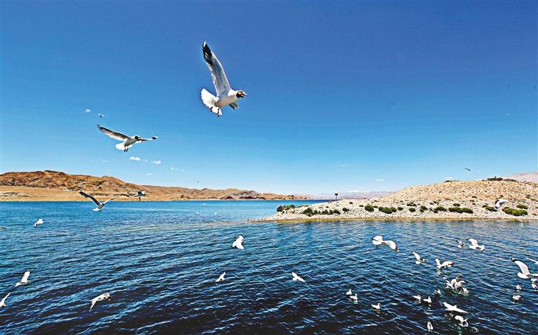 “現(xiàn)在的拉薩河更像一個(gè)湖,湖寬水深、濤聲陣陣,金色的陽(yáng)光灑滿湖面,一陣風(fēng)吹來(lái),掀起了不少漣漪。成群結(jié)隊(duì)的候鳥(niǎo)在湖面自由自在地翱翔、嬉戲,讓人心曠神怡。”傍晚時(shí)分,家住頓珠金融城的拉薩市民平措在拉薩河三號(hào)閘上悠閑散步、感慨地說(shuō)道。