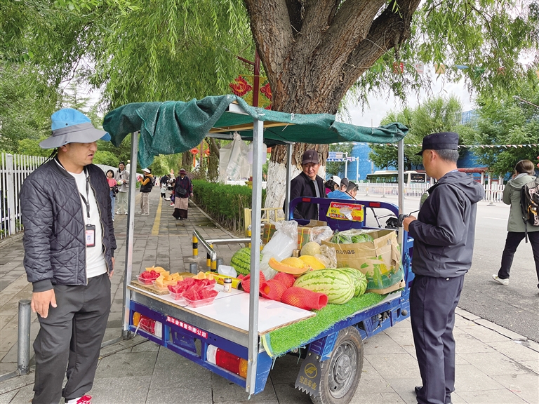 “我們從每日早上10點(diǎn)至晚上11點(diǎn),對(duì)布達(dá)拉宮南門(mén)、宗角祿康東門(mén)采取值班執(zhí)勤等方式進(jìn)行不間斷盯守,同時(shí)加強(qiáng)城管執(zhí)法大隊(duì)日常路段巡查力度,進(jìn)一步鞏固整治工作成效,提高監(jiān)管效率,形成規(guī)范化和長(zhǎng)效化的城市管理機(jī)制,共創(chuàng)文明有序的市容環(huán)境?!辈歼_(dá)拉宮周邊亂象專(zhuān)項(xiàng)整治工作專(zhuān)班成員常春告訴記者。