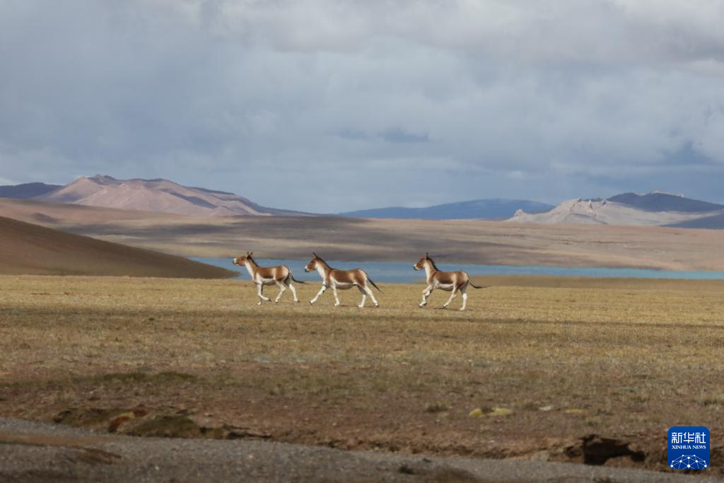 這是令戈錯(cuò)湖邊的藏野驢群(9月8日攝)。新華社記者 劉詩平 攝
